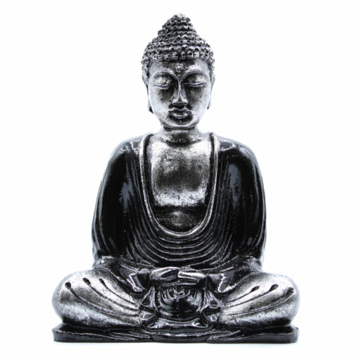 Ručně vyrobený a malovaný 15 cm vysoký Buddha z Bali, Indonésie. Pozice ve které Buddha sedí, je vysoce symbolická, pozice “Dhyana“, při které jsou obě ruce v klíně, vnější strana pravé ruky je v dlani levé ruky, přičemž se palce navzájem dotýkají, tedy formují mystický trojúhelník. Toto je pozice meditační mudry, která symbolizuje moudrost.