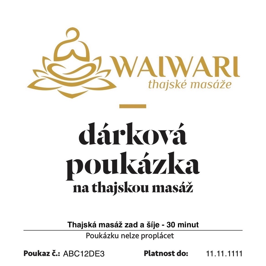 Fyzický dárkový poukaz na Thajskou masáž zad a šíje – masáž zad a šíje na tvrdém křídovém papíru vložený v luxusní zlaté obálce Clairefontaine formátu DL (110 x 220 mm). Platnost poukazu 280 dní.